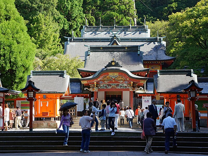 Le sanctuaire de Kirishima est censé avoir été construit à l'emplacement où Ninigi-no-Mikoto descendit des plaines célestes sur la Terre, afin d'y régner conformément au mandat attribué par Amaterasu Omikami, ce qui explique que…