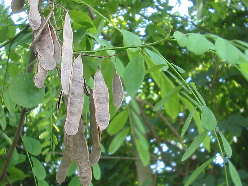 Le robinier faux-acacia ou acacia, est une espèce de la famille des Fabacées. Cet arbre présente des fleurs zygomorphes caractéristiques chez les Fabacées. Ses fruits sont des gousses ressemblant à un haricot plat avec des graines à l'intérieur.