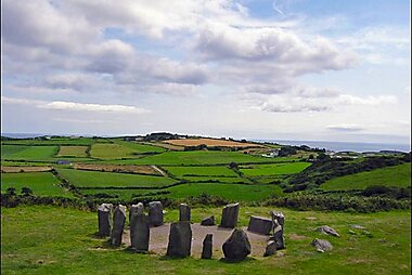 Drombeg stone circle is a small axial stone circle located 2.4 km east of Glandore, County Cork, Ireland.