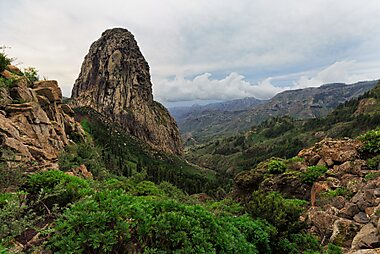 Roque de Agando is a prominent rock formation on the island of La Gomera in the Canary Islands.