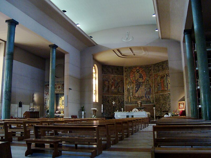 Nella facciata della chiesa vi sono due lapidi commemorative. La prima ricorda il bombardamento alleato, fece 1.500 morti e colpì in parte anche la chiesa, e la visita immediata di papa Pio XII; la seconda ricorda don Andrea Santoro, sacerdote fidei donum, che fu parroco in questa chiesa dal 1994 al…