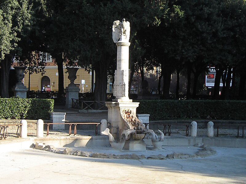 La scenografica fontana di piazza Mazzini si trova a Roma, al centro dell'omonima piazza, in un'area adibita a giardino pubblico delimitata da alberi e cespugli.