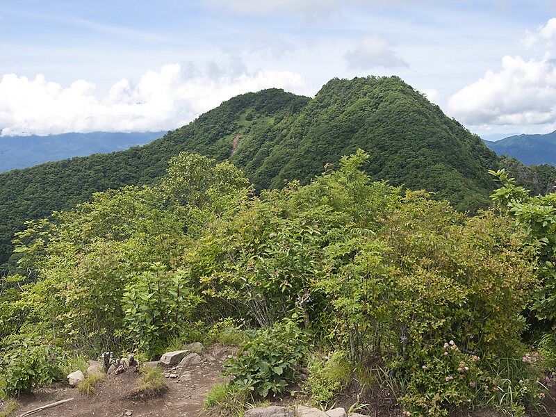 標高は1,764m。登山道中、八ヶ岳がよく眺望出来る。北峰と南峰がある。茅ヶ岳と連なって、八ヶ岳に似て見える。という異名がある。