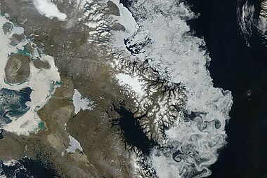Quttinirpaaq National Park is located on the northeastern corner of Ellesmere Island in the Qikiqtaaluk Region of Nunavut, Canada.