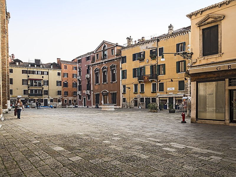 사랑스러운 작은 광장은 많은 인상적인 역사적인 건물 (예 : 산타 마리아 글로 로사 데이 프라 리 교회 또는 산 로코 교회)뿐만 아니라 다과를 먹을 수있는 많은 레스토랑과 바로 둘러싸여 있습니다. 유명한 이탈리아 예술가들의 작품을 볼 수있는 Scuola Grande di San Rocco도 근처에 있습니다.
