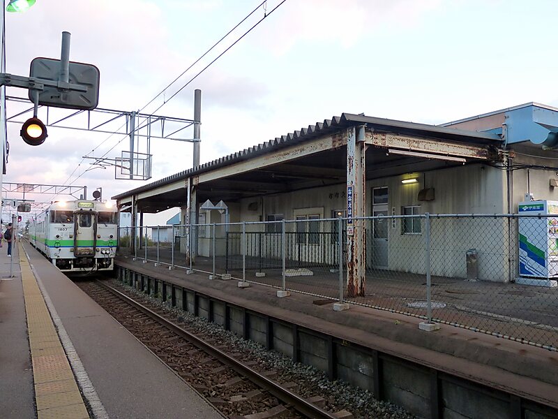 JR北海道江差線七重浜駅のホームの様子。右側は旧…