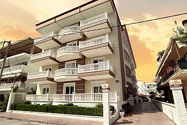 Vizantio ligt in de badplaats Paralia en biedt kamers met eigen kookgelegenheid en een eigen balkon met uitzicht op de berg Olympus.