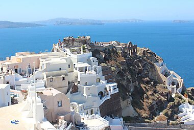 If you want to see the most beautiful sunset at Santorini, come to the ruins of a 15th century castle. The view will take your breath away!