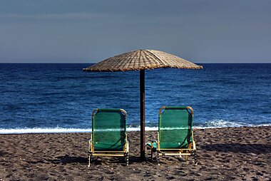 Een prachtig strand met zwart zand dat wordt gezien als een van de beste stranden van Santorini. Het hele gezin kan zich hier amuseren.