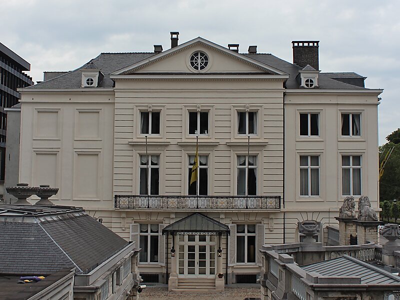 De 18e-eeuwse stadswoning in neoklassieke bouwstijl werd ontworpen en gebouwd onder supervisie van de Franse architect Barnabé Guimard, die eveneens tekende voor heel wat andere bouwwerken in de onmiddellijke omgeving van het Koningsplein, de Koningsstraat en de Wetstraat, waaronder het Paleis der Natie, Sint-Jacob-op-Koudenberg, Hôtel Bellevue, Huis van het Gewest, de gebouwen van het Grondwettelijk Hof en het Rekenhof en het Hôtel de Ligne.