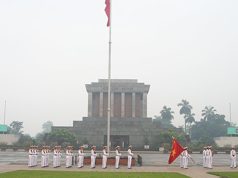 Aan het plein staat het mausoleum van Hồ Chí Minh, waar hij tegen zijn zin in ligt opgebaard. Hồ Chí Minh wilde gecremeerd worden. Dit zou hygiënischer zijn en het zou landbouwgrond schelen.