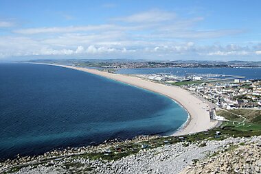 Chesil Beach in Dorset, England is one of three major shingle beach structures in Britain.