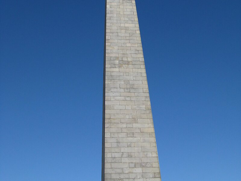 The Bunker Hill Monument is a monument erected at the site of the Battle of Bunker Hill in Boston, Massachusetts, which was among the first major battles between the Red Coats and Patriots in the American Revolutionary War. The 221-foot granite obelisk was erected between 1825 and 1843 in Charlestown, Massachusetts, with granite from nearby Quincy conveyed to the site via the purpose-built Granite Railway, followed by a trip by barge. There are 294 steps to the top.