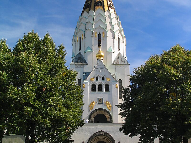Philipp-Rosenthal-Straße. Wzniesiona w dla upamiętnienia udziału wojsk rosyjskich w bitwie pod Lipskiem. Pozostaje w jurysdykcji eparchii berlińskiej i niemieckiej Rosyjskiego Kościoła Prawosławnego.