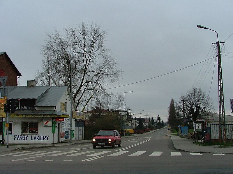 We wsi znajduje się skrzyżowanie drogi krajowej nr 17 z drogą wojewódzką nr 807.