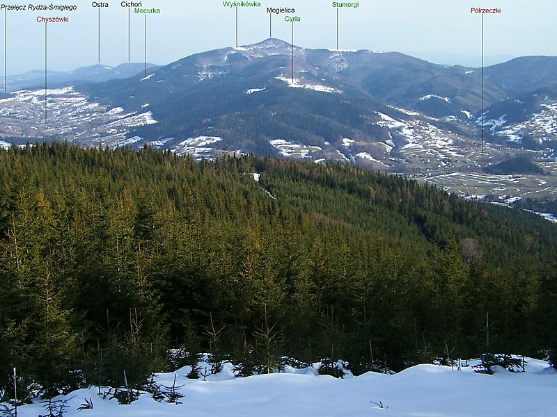 Mogielica – najwyższy szczyt Beskidu Wyspowego. Wierzchołkowa część masywu Mogielicy jest nazywana przez miejscową ludność Kopą, ze względu na charakterystyczny kształt. W starszej literaturze można spotkać błędną nazwę „Mogielnica”. Z punktów widokowych, na szczycie i na polanach, rozpościerają się szerokie widoki na Beskid Wyspowy, Beskid Sądecki, Pieniny, Gorce, Tatry.