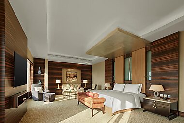 O Shangri-La Hotel, Hefei apresenta quartos com janelas do chão ao tecto que têm vista para o jardim e para a cidade.