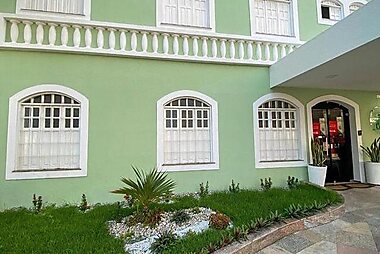 O Hotel Villa Mayor Charme - fortaleza é um hotel encantador com uma bonita fachada e adoráveis jardins em redor de uma piscina para…