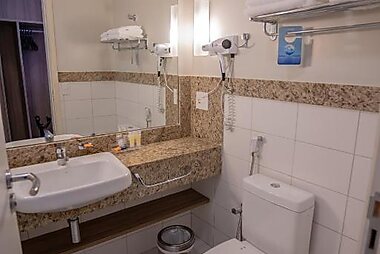 Este hotel de 4 estrelas em Gonzaga, São Paulo, dispõe de quartos modernos com uma televisão LCD.