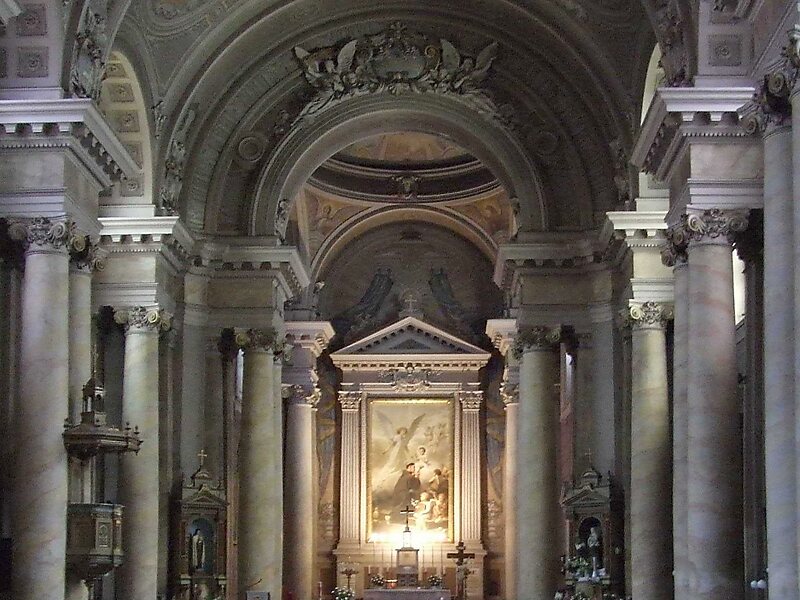 Nava bisericii are o lungime de 43 metri, o lățime de 17 metri. Deasupra intrării se află o copie a statuii Pieta. Crucea de pe cupolă se află la o înălțime de 56 metri.