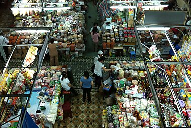 Рынок для местных жителей и туристов, предлагающий местные продукты и одежду.