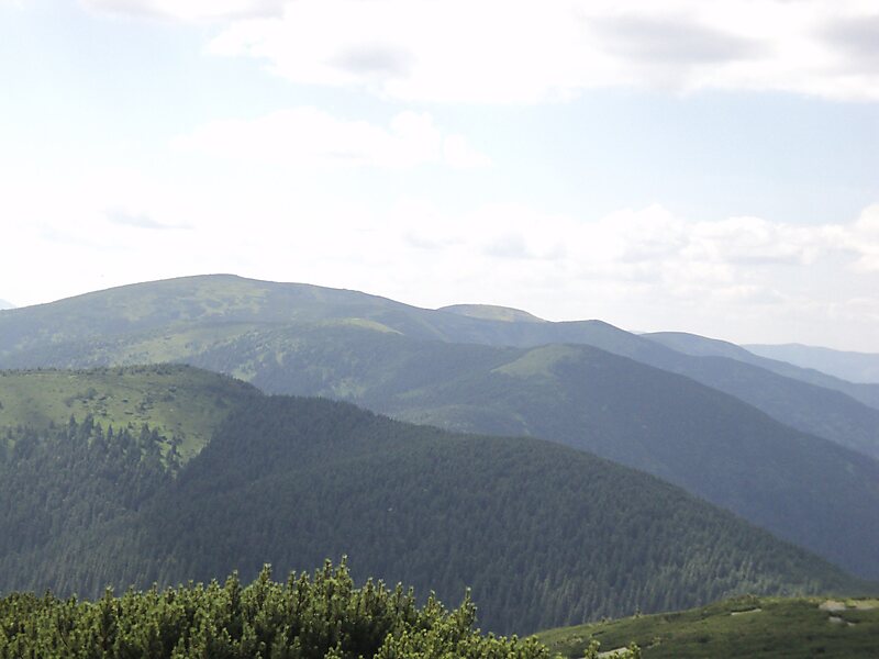 Привершинные склоны хребта местами покрыты каменными россыпями и осыпищами. Растительность до высоты 1400—1600 м представлена еловыми лесами, выше криволесье из сосны горной и полонины. Вершины в основном с мягкими очертаниями.