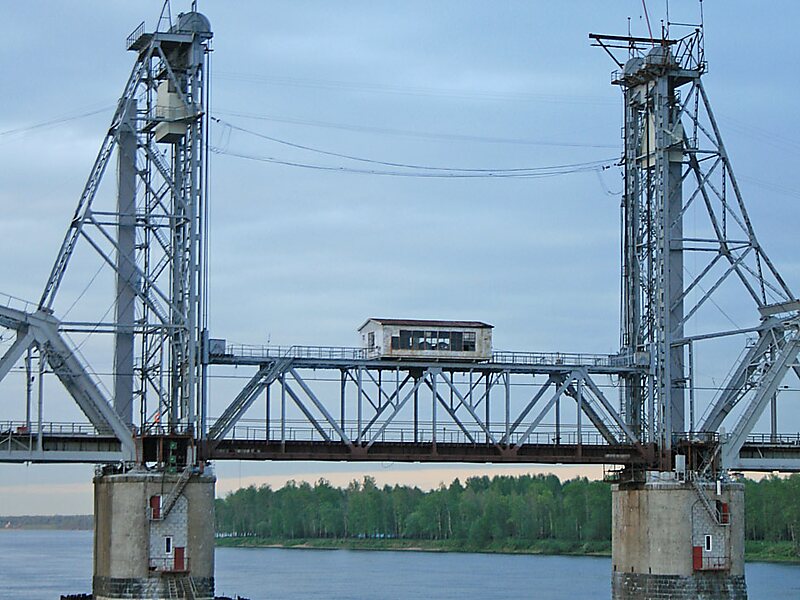 По этому мосту проходит один путь двухпутной железнодорожной линии от Санкт-Петербурга на Горы.