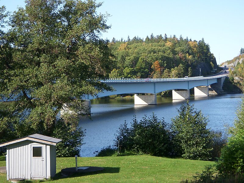 Över Ekolsundsviken leder tre broar. Två är för motorvägen E18 och en för Mälarbanan. Den södra motorvägsbron är 430 meter lång och 10 meter hög och stod klar 1989, till en början som motortrafikled. I oktober 1992 invigdes den norra bron som är 510 meter lång och 12 meter hög. Bron för Mälarbanan stod klar 1995.