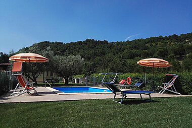 Set in its garden with sun loungers in Verucchio, Il Casale dell’Arte - Le Case Antiche is located on a hillside with panoramic views of…