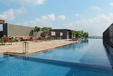 Roseate House New Delhi offers a rooftop infinity pool, a spa and wellness centre and 3 dining options.