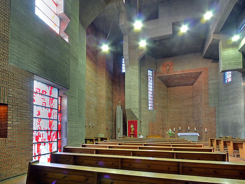 Bu kilisenin yerinde 1934 ile 1936 yılları arasında Düsseldorflu bir mimar Franz Schneider tarafından geleneksel tarzda tasarlanan başka bir kilise binası yer alıyordu. II. Dünya Savaşı’nda özellikle 1944 yılında maruz kaldığı bir bombardıman sırasında hasar görmesine rağmen ayakta kalan kilise 1967 yılına kadar kullanıldı.