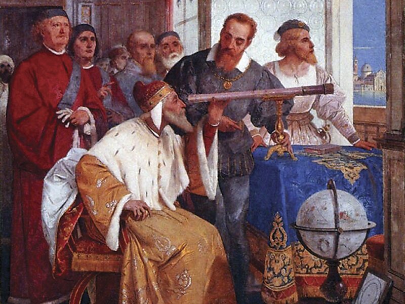 Galileo Galilei, İtalyan astronom, fizikçi, mühendis, filozof ve matematikçiydi. Rönesans'ın bilimsel devrimine büyük katkıda bulunan bilim insanına “gözlemsel astronominin babası”, “modern fiziğin babası” ve “bilimin babası” gibi isimler takılmıştır. Gözlemsel astronomiye katkılarının arasında Venüs'ün evrelerinin teleskopik kanıtı, Jüpiter'in en büyük dört uydusunun keşfi, güneş lekelerinin gözlemi analizi bulunmaktadır. Galileo ayrıca uygulamalı bilim ve teknoloji alanında da çalışmış ve geliştirilmiş bir askeri pusula gibi başka aletler icat etmiştir.