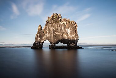 Hvitserkur is a 15-meter-tall sea stack resembling a drinking animal. People can't decide whether it looks most like a rhino, a dragon or an…