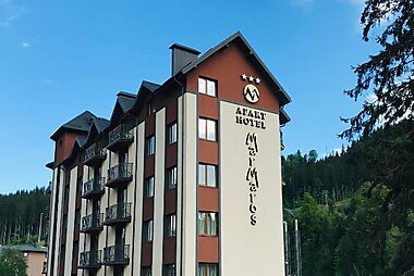 Marmaros Apart-Hotel & Spa酒店位于Bukovel中心,距离滑雪缆车有100米之遥。所有的客房都设有山景阳台。酒店还设有一个Spa中心。