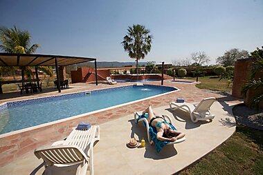 Hotel La Villa Chiquitana酒店设有一个带吊床的花园和一个游泳池、一间餐厅和一个图书馆,提供带免费WiFi和空调,距离圣何塞德奇基托斯主广场(San Jose de Chiquitos Main Square)仅有5分钟步行路程,提供免费停车场。…