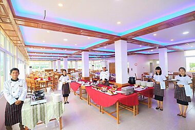 Aureum Palace Hotel & Resort Inle酒店提供水上或水滨别墅式客房,毗邻茵莱湖(Inle Lake)和良丹瑞(Nyaung Shwe)的南部。…