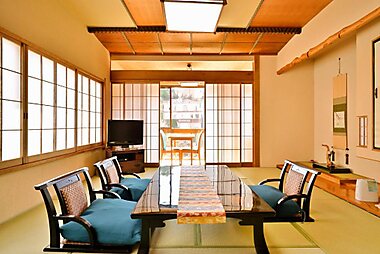 Gyokusuikan位于东伊豆町,提供带免费WiFi的空调客房。这家住宿位于热川温泉。客人可以使用温泉浴池。住宿配有一间供应日式风味美食的餐厅,提供免费私人停车位。 这家日式旅馆的客房配有电视和吹风机。 Gyokusuikan的客人可以享用亚洲风味早餐。…