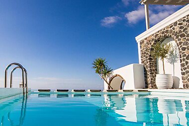 Astro Palace Hotel & Suites酒店海景幽雅,距离费拉和火山口仅有很短的步行路程,设有一座健康中心、一座游泳池,提供享有爱琴海一览无余海景的客房。