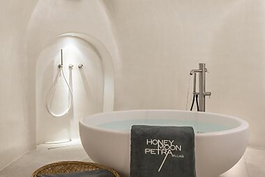 Petra Villas酒店建造在岩石中,享有圣托里尼(Santorini)群岛的美景,提供带免费WiFi的粉刷雪白的传统客房和公寓、一个屋顶游泳池以及享有爱琴海(Aegean Sea)美景的按摩浴缸。…