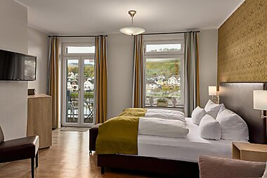 This 4-star spa hotel in Senheim-Senhals offers a beautiful private roof terrace directly overlooking the Moselle River and great views of…
