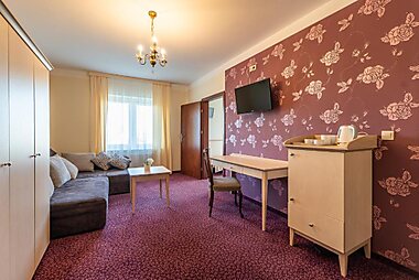 Pensjonat Kaszubianka提供餐厅、花园、共用休息室和露台,距离西亚诺蒂海滩(ianozety Beach)有几步路。住宿提供免费WiFi,内部提供私人停车位。 房间配有阳台、平板电视以及带淋浴设施和吹风机的私人浴室。住宿还配备迷你吧和电热水壶。…