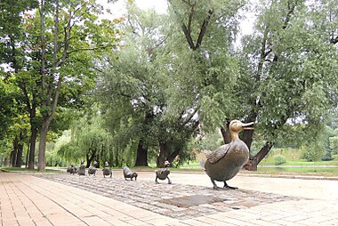 Make Way for Ducklings is a sculpture by Nancy Schön, which recreates the duck family in Robert McCloskey's children's classic Make Way for…