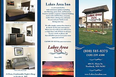 Lakes Area Inn坐落于明尼苏达州的Starbuck,距离Andes Tower Hills有36公里。住宿配有露台。客人可以使用免费WiFi和免费私人停车位。 这家酒店的客房配备空调和平板电视。 最近的机场是圣克劳德机场,距离Lakes Area Inn有126公里。