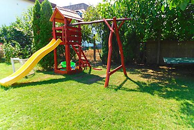 Berta Apartmanházak住宿加早餐旅馆坐落在豪伊杜索博斯洛(Hajdúszoboszló),距离医疗spa中心、露天浴池和温泉公园400米,提供免费WiFi、免费保姆服务以及1个带顶棚露台、烧烤设施和儿童游乐场的大型花园。 Berta…