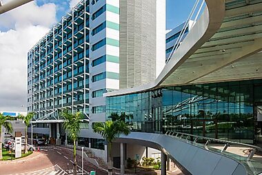 Hotel Deville Prime Salvador sits in a scenic landscaped park filled with lakes and rare birds.