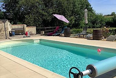 Maison Lavande住宿加早餐旅馆位于Saint Denis Du Pin,坐落在Charente-Maritime地区的一座曾经是传统农舍的建筑内,提供宠物友好型住宿,配有季节性室外游泳池、烧烤设施、免费WiFi和免费内部私人停车场。