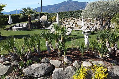 At an altitude of 600 metres in Tirolo, family-run Landsitz Stroblhof offers views of the mountains and Merano.