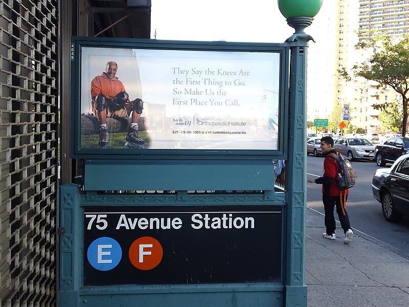 75大道车站 ,原名“75大道-清教徒大道车站” 是纽约地铁IND皇后林荫路线的一个慢车地铁站,位于皇后区森林小丘75大道及皇后林荫路,设有F线 、E线 列车服务。 车站在1936年12月31日作为独立地铁系统皇后林荫路线其中一站启用。此站的开业对邻近的森林小丘社区带来显著增长,并将它原本的安静住宅区转变为活跃的人口集中地。