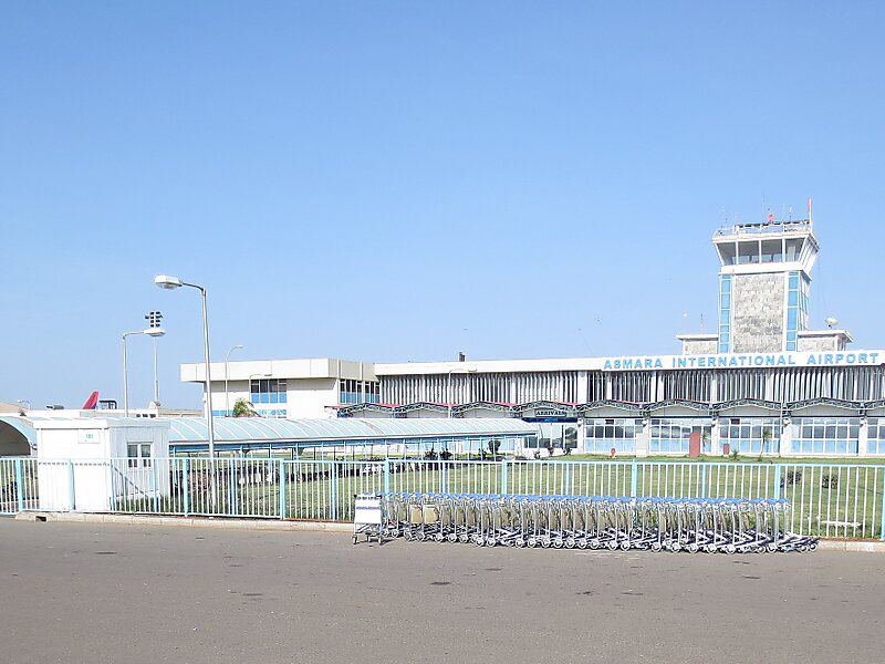 在1922年由意大利殖民政府所建造。一开始为军用,于1930年代中期才有民间及商用航班。在二战中遭英军摧毁,于1950年代修复。在2004年,服务了136,526位乘客,比前年 增长11.8%。这机场有严重的能力限制,因为只有一个小型的航站楼,跑道短和地势高。即是大型喷气式飞机 不能安全降落,这些大型喷气式飞机要转往马萨瓦国际机场。但自2008年起,已没有再这样做。