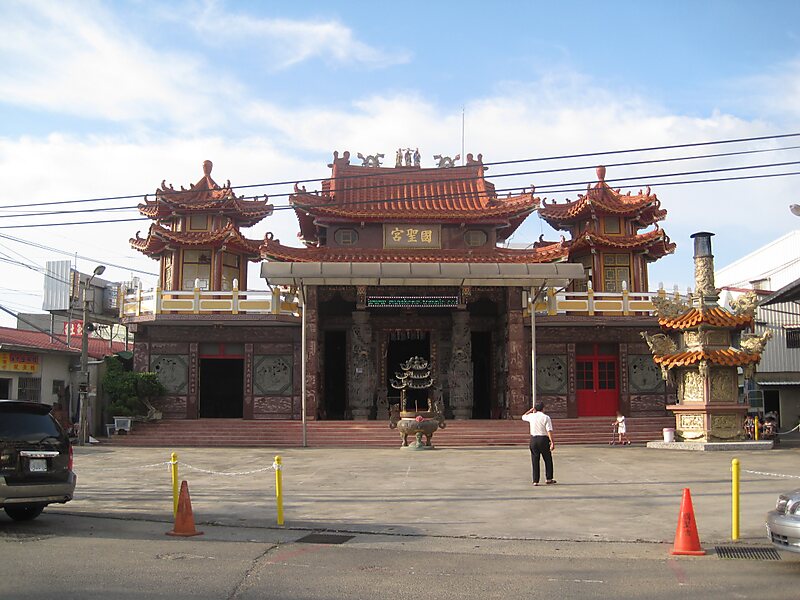 大湾国圣宫位于台湾台南市永康区大湾地区,是姓郑仔聚落的角头庙,主祀国圣爷 ,也就是国姓爷郑成功。该庙前身是一神明会,1979年信众才组织国圣宫筹建委员会,并在1985年落成。 国圣宫内另供奉有三尊大湾当地特有神明,分别是太妈 、谢府千岁 、郑坛尊王 。